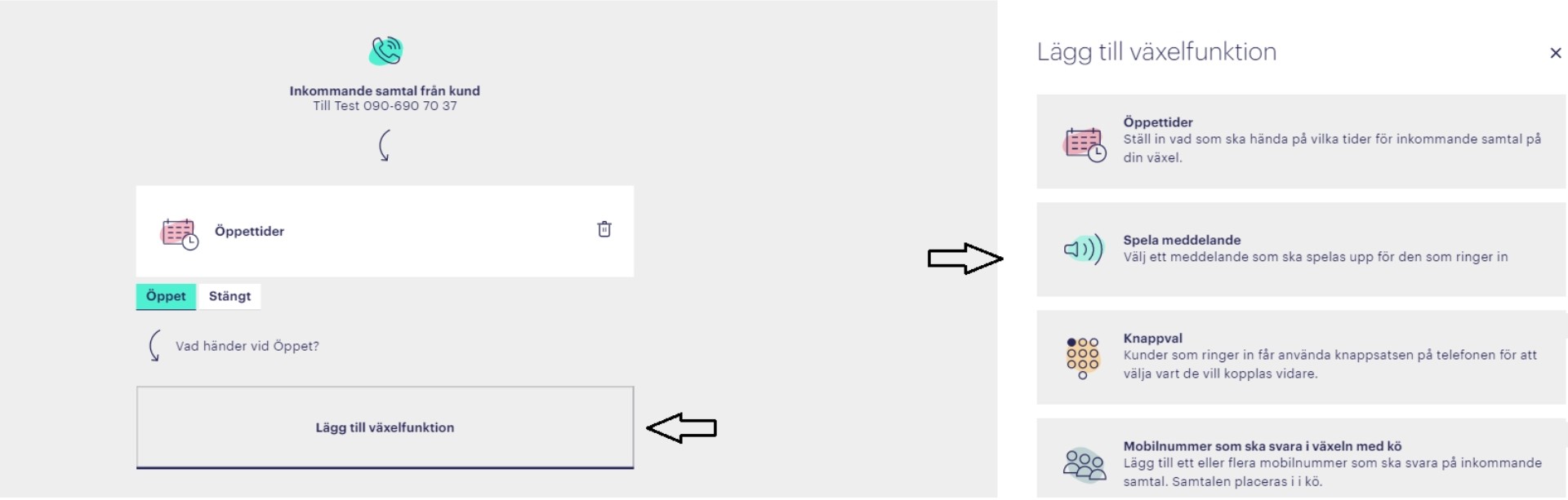 - Då kommer du in i inställningarna för din växel. Klicka på lägg till växelfunktion. Till höger får du upp olika funktioner man kan ha i växeln, klicka på spela meddelande.